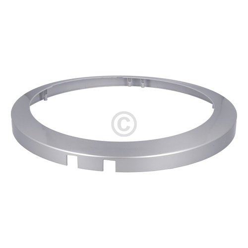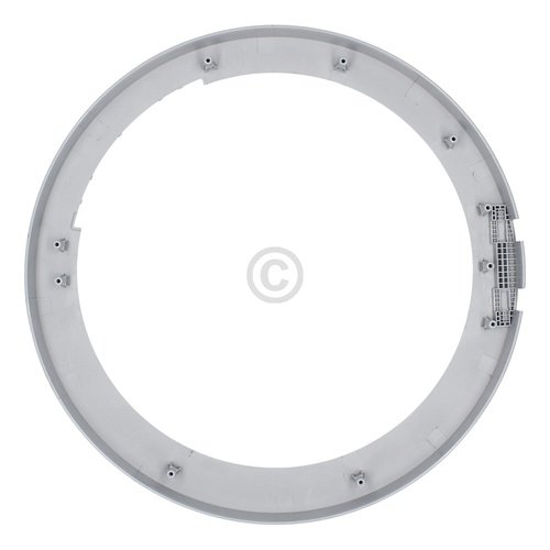 Dieser silbergraue Fensterrahmen ist der äußere Ring an der Türe der Frontladerwaschmaschine.